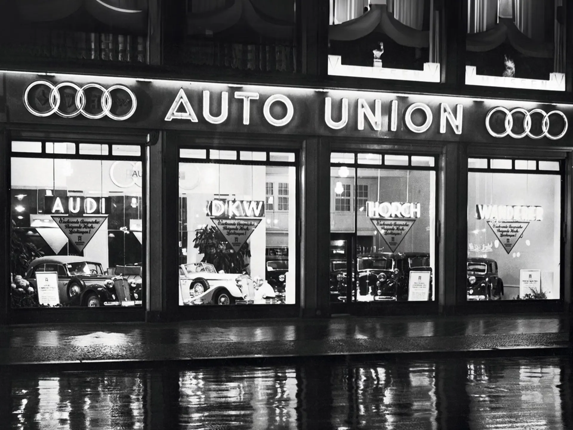 In 1932, Audi joined forces with DKW, Horch, and Wanderer, forming Auto Union AG. The four interlinked rings of Audi’s logo symbolize that partnership and remain an enduring emblem of unity and progress.
